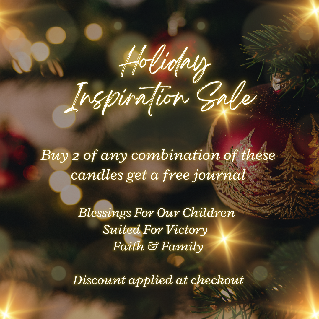 Candlelight Inspiration is a candle company with candle themes that inspire an intentional candle lighting experience. Joy, Grateful Heart, Soul Revival, Faith and Family, Blessings for Our Children, are candle themes that are close to the heart, spurring prayer and meditation to help one thrive in life. The candle selection includes the option to choose your scent. Each candle comes with a prayer card. Add our signature journal to make meditation a time to record deeper reflection and renewal. Our selection of books support mental and spiritual growth. All purposed to elevate your spiritual wellbeing through a closer and deeper relationship with the Lord. Please enjoy your selection and receive His blessings of peace as you indulge in His spiritual light. It is His Spirit, His Light for Our Life. Light for Life.